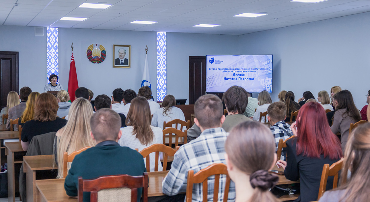 Ректор Брестского государственного технического университета Сергей Антонович Касперович и проректор по идеологической и воспитательной работе Наталья Петровна Яловая встретились со студенческим активом БрГТУ. Встреча прошла в теплой и конструктивной атмосфере, став площадкой для открытого диалога между руководством университета и представителями молодежи.